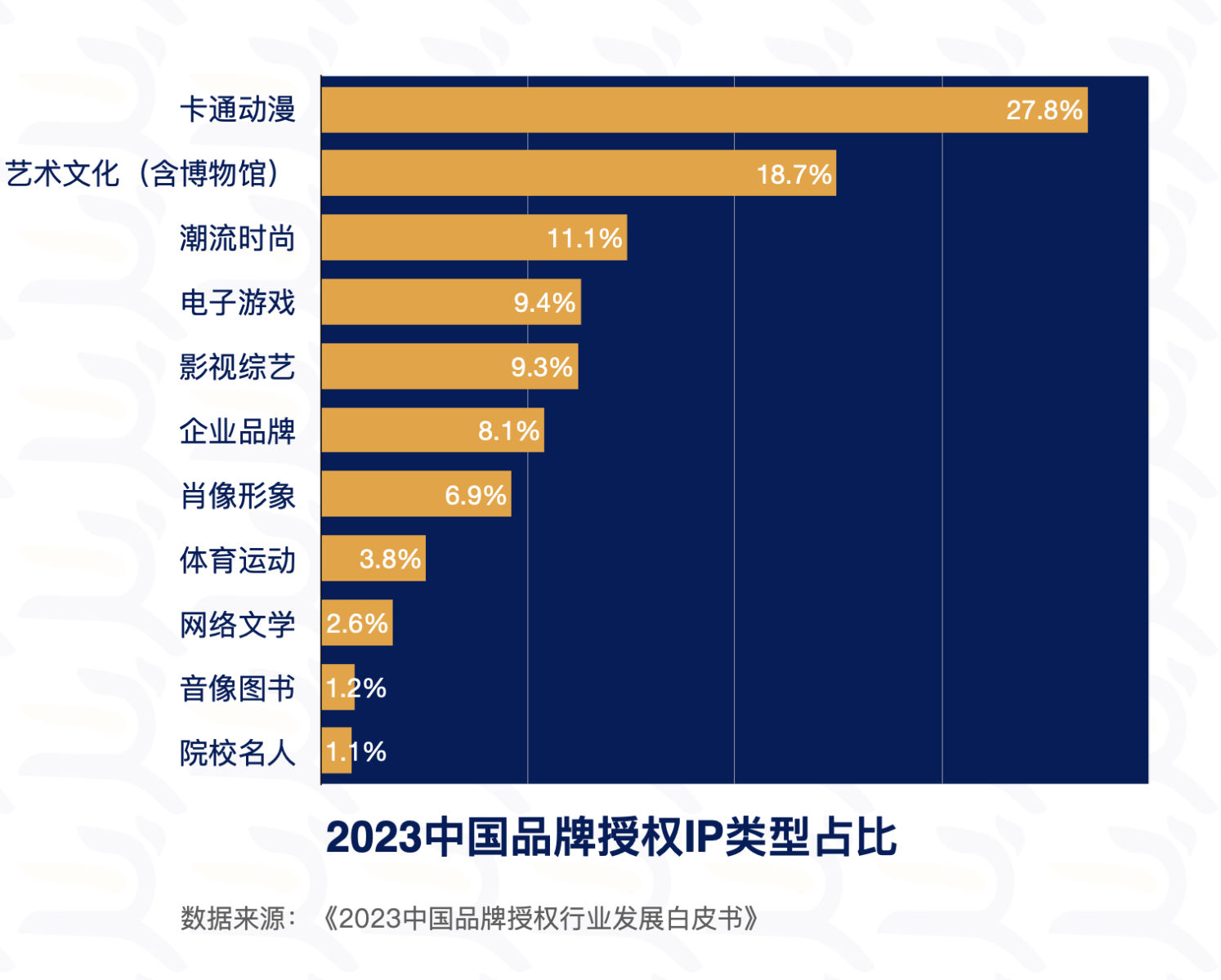 文博文旅IP正成为全球授权行业一股强劲增长力量。据《2024全球授权市场报告》,全球艺术及非营利类IP授权商品及服务零售额已达57亿美元。非营利类IP授权业务年度增长率为19.4%,高居榜首。在中国市场,艺术文化IP(含博物馆)授权数量也已达到18.7%,仅次于排名第一的卡通动漫。